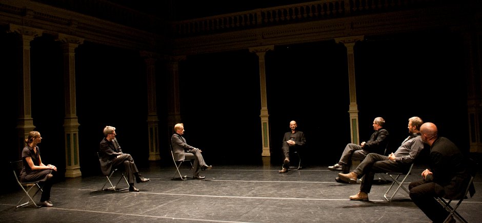 In the Riga performance we will see on stage the artistic leader of Tallin’s independent stage – Kanuti Gildi Saal and the curator of the Baltoscandal festival – Priit Raud, artistic directors of two Norwegian contemporary theatre centres – Per Ananiassen from ‘Avantgarden’ in Trondheim and Sven Birkeland from ‘BIT Teatergarasjen’ in Bergen, the director of ‘Performance Space 122’ Vallejo Gantner from New York, German dramaturg and artistic director of Impulse Theater Biennale – Florian Malzacher, as well as the director of ‘Homo Novus’ – Gundega Laiviņa.